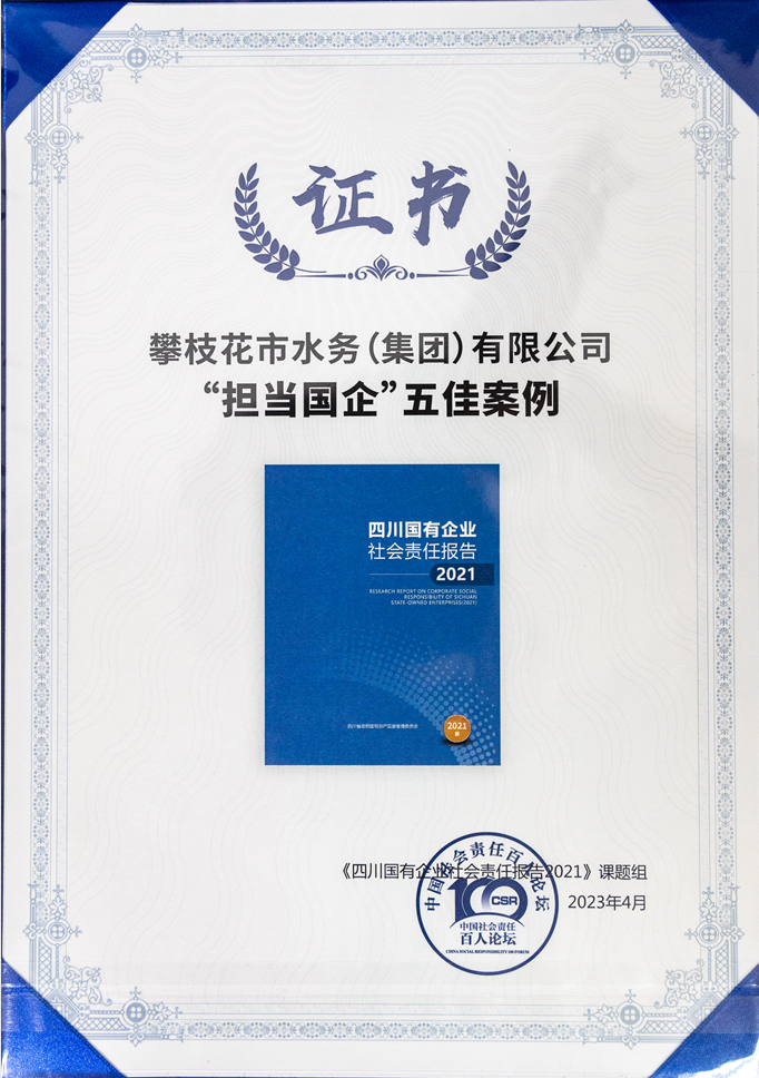 4月26日,由國(guó)務(wù)院國(guó)資委社會(huì)責(zé)任局指導(dǎo)、四川省國(guó)資委主辦、中國(guó)社會(huì)責(zé)任百人論壇承辦的四川國(guó)有企業(yè)社會(huì)責(zé)任報(bào)告(2022-2023)編制啟動(dòng)儀式在成都舉辦,攀枝花市水務(wù)集團(tuán)社會(huì)責(zé)任案例獲評(píng)“擔(dān)當(dāng)國(guó)企”五佳案例,全省僅35家企業(yè)獲此殊榮。